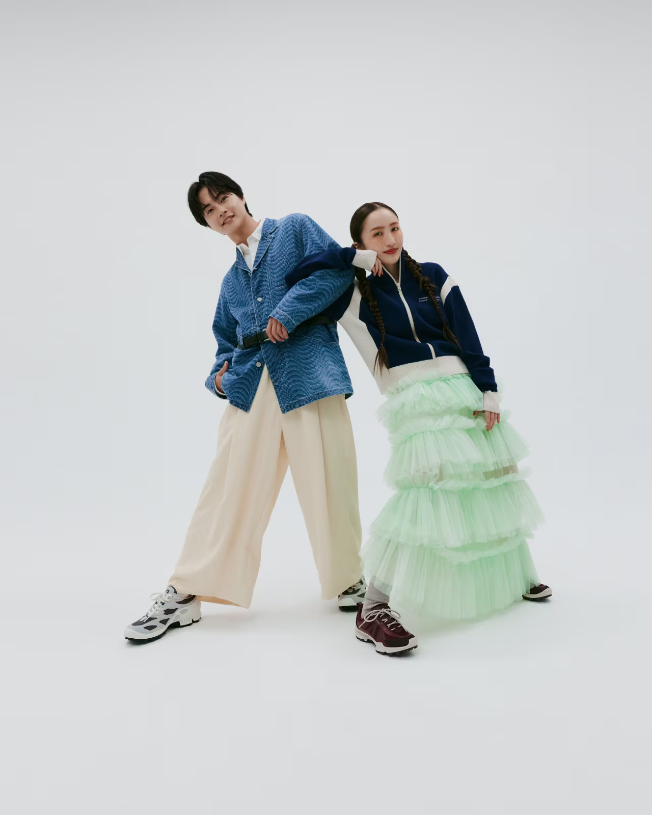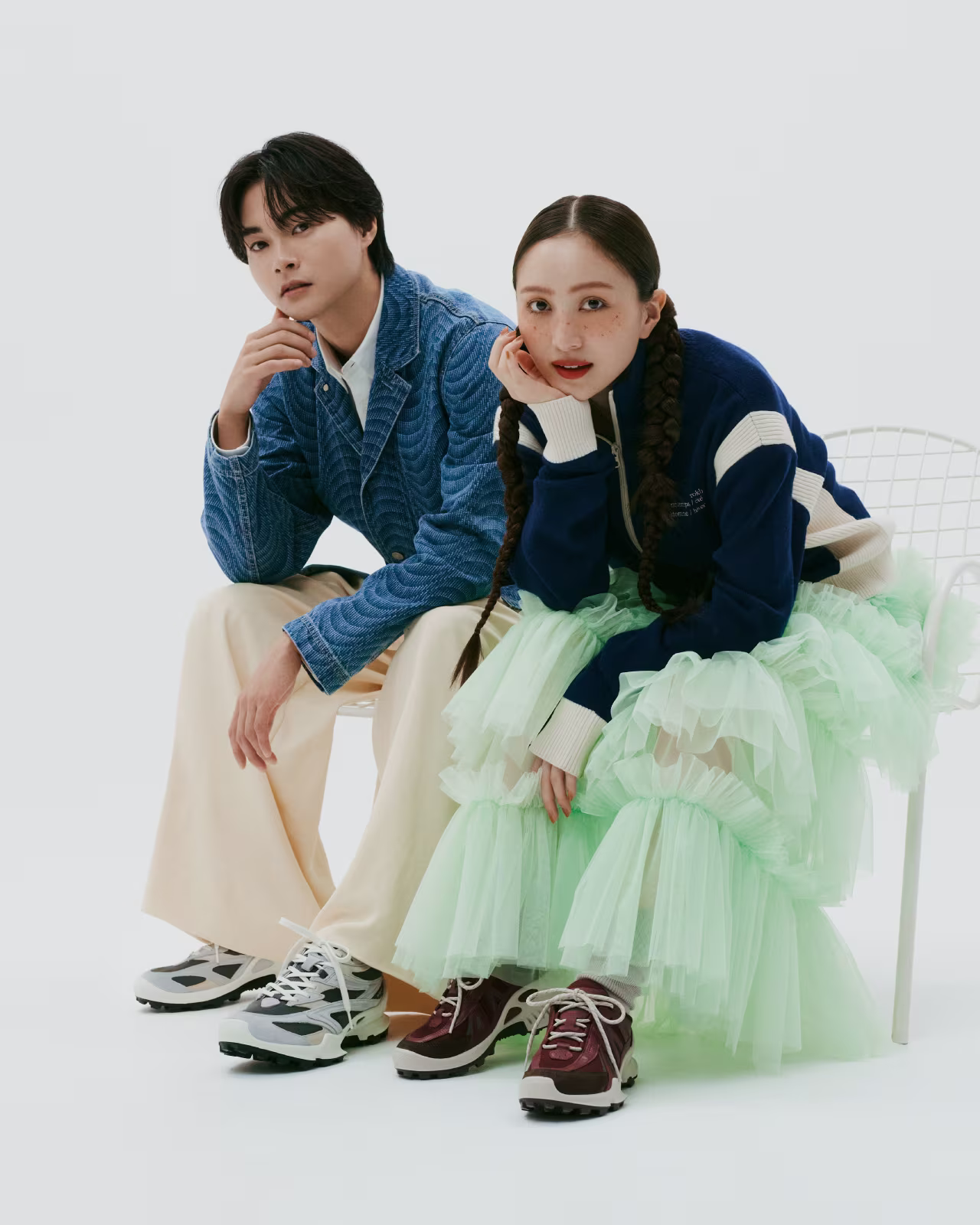 百田夏菜子と結木滉星が、暖かく繊細なカラーを落とし込んだ注目スニーカーをアクティブに履きこなす。